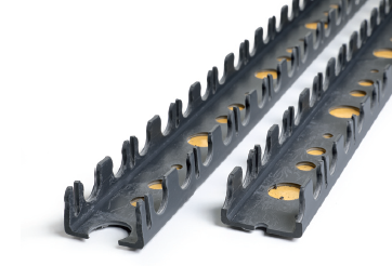 Barra portatubo per tubazione Pe-Xa da 20x2 mm o 25x2,3 mm da fissare al pannello IsoBlack mediante striscia adesiva e fori per le clips “FIX” oppure al sottofondo con appositi tappi ad espansione. La barra è facilmente tagliabile a misura in cantiere senza attrezzi grazie alle pratiche incisioni di pretaglio. Le barre sono provviste lateralmente di scanalature per il tubo ogni 5 cm facilitando, così, il posizionamento del tubo in prossimità del collettore e permettendo i passi di posa 15, 20 e 30 cm.